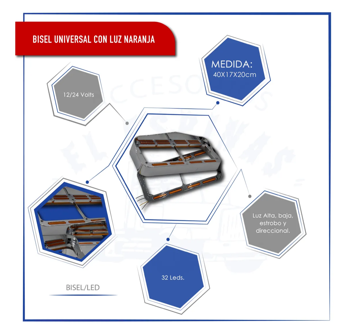 Bisel con 32 leds (Alta, Baja, Estrobo, Direccional) de 12V/24V