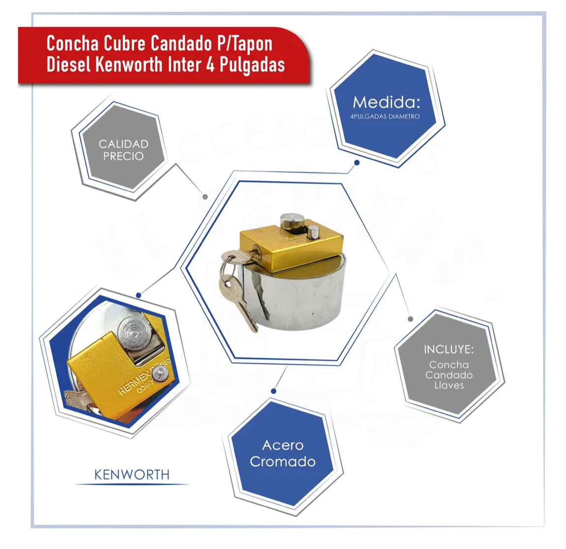 Concha Cubre Candado P/tapon Diesel Kenworth Inter 4 Pulgada Acero
