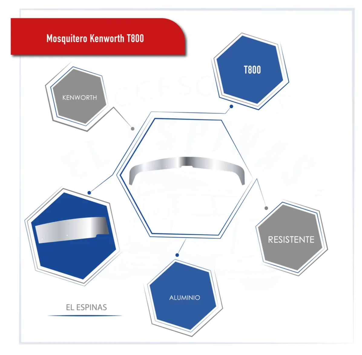 Mosquitero Kenworth De Acero Inoxidable Cromado T800 de Alta Calidad y Excelente Acabado. Con Bases de Instalación