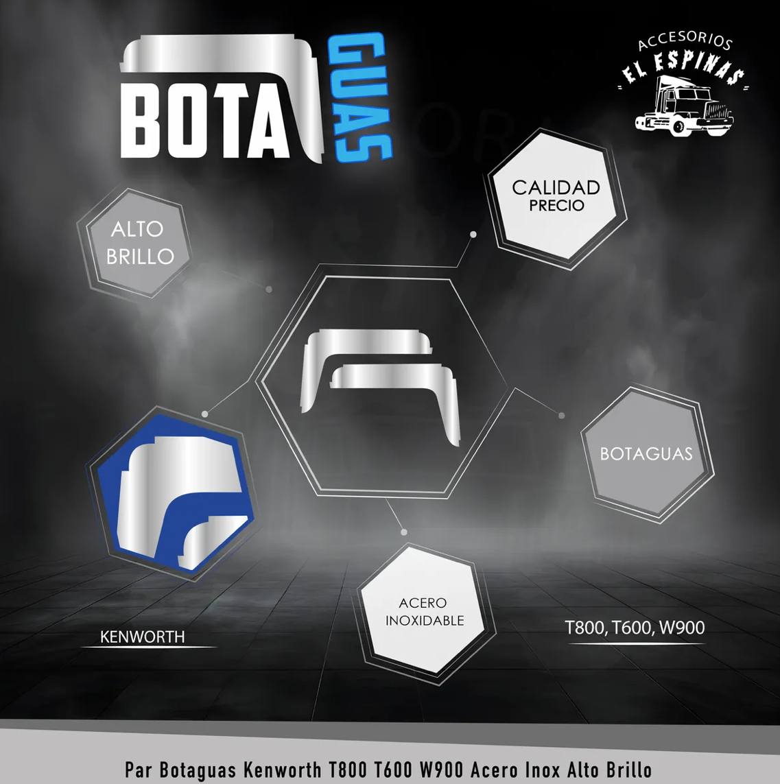 Par de Botaguas Kenworth T800 T600 W900 Acero Inox de Alto Brillo de Excelente Calidad con Buenos Acabados